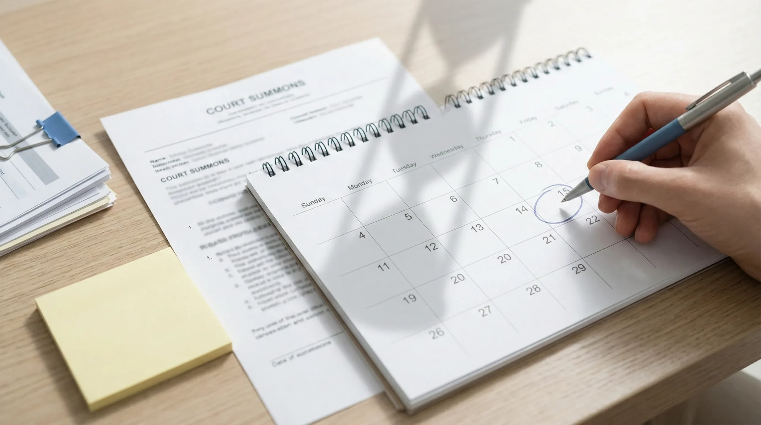 - Calendar the response requirement exactly as written on the summons.